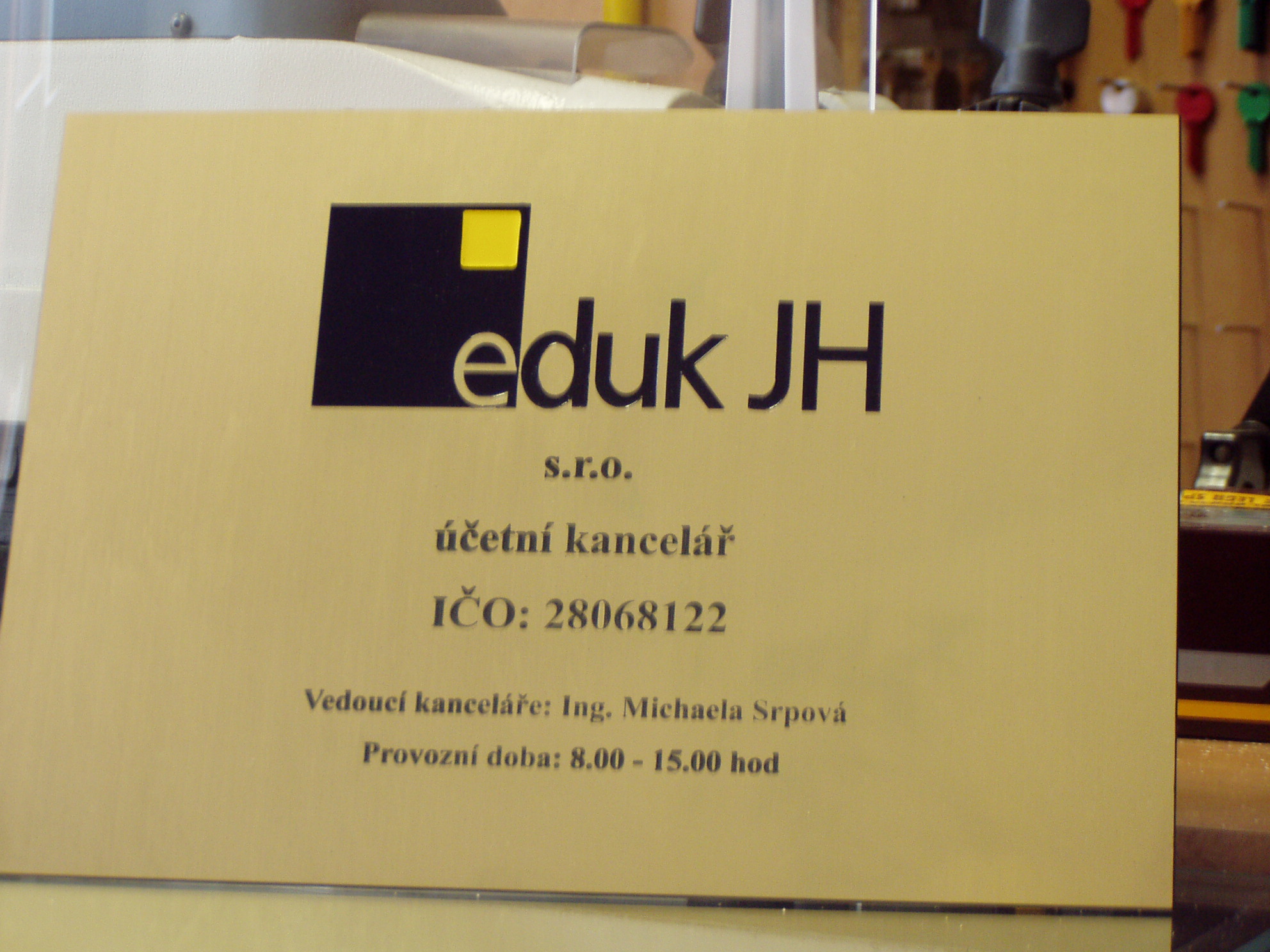 Firemní štít reprezentací Vaší firmy. Zpravidla obsahuje údaje stanovené zákonem (název firmy, IČO apod.), dále adresy, jména, telefony a adresy www stránek.
