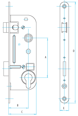 Základní rozměry zadlabávacích zámků:
